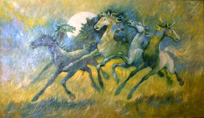 Quick, rich of energy, deep into the quest for the detail, Camillo Fait does not renounce to represent his characters a little veiled with a sort of melancholy physiognomy. Themes, impressions, attitudes, indicate a sensitiveness which does not stop on the picture surface, but which draws from it a more intense and pondered representation. It is absolutely manifest: the painter follows his nomad hand and controls it with all the pleasure that virtuosity is able to offer in these cases. But its "doing it soon" does not limit itself to ability. So, his small women, caressed by violets, yellows, ultramarine blue, variously mingled up to the complex and tender modulation of green, show themselves as dancing Hours, characters of an imaginary space populated with benevolent muses, pointing the right way of the expressive balance.